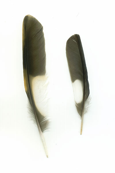 左は今年3月に小布施町のとあるお山で拾ったトラツグミの羽です。右はこの日曜に上信国境の山で拾ったもの。