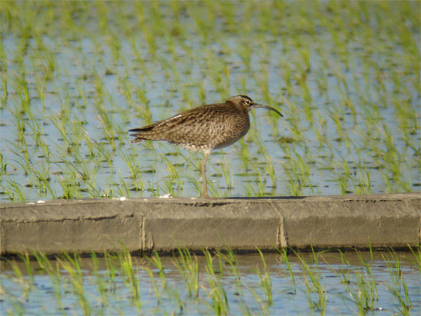 陽の傾き始めた田圃で黄昏るチュウシャクシギです。