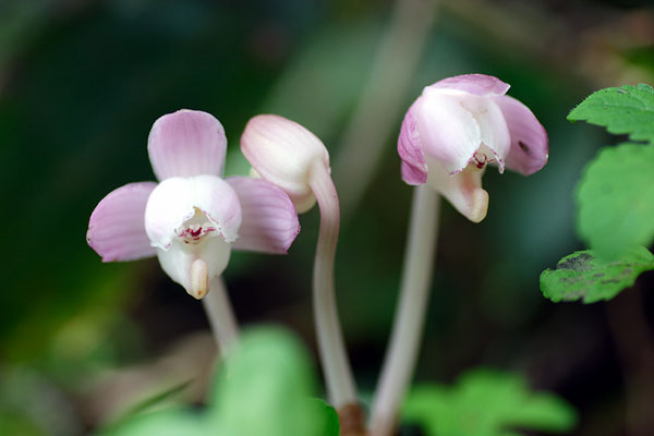 上の2種はイチヤクソウ科(クロンキスト体系ではシャクジョウソウ科)ですが、こちらはラン科になります。