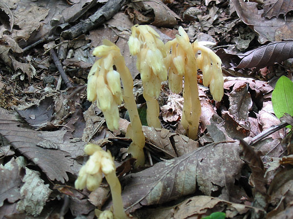 ギンリョウソウに似ていますが、こちらはゴーヂャスな金色してて、1本の茎からいくつもの花を咲かせるところが違いですね。