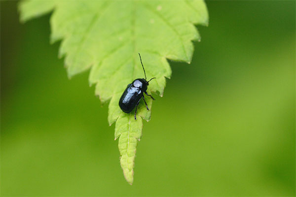 まんづ一発目は、先月初めに志賀高原で撮った「ヨモギハムシ」なんですが、その後の調査の結果、「バラルリツツハムシ」ではないかということになりました。ヨモギハムシというのは1cm以上ある大型のハムシだそうで、おいらが撮ったやつはパッと見5~6mmくらいしかありませんで、あの記事を書いたときからこの点が「?」だったんです。