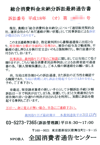 大体さ、この個人情報保護の時代に、「あんた訴えられてるからどうにかしてあげようか?」なんて内容をハガキで送るか? しかも官製ハガキだし、あて先にはアパート名もないし。