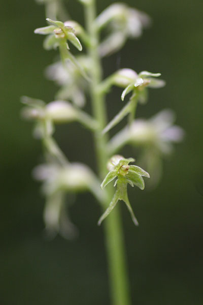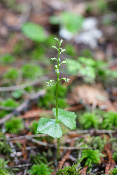 イチヨウランがピークを迎える頃に咲き始めるのが、このコフタバラン。ちっちゃくて葉っぱが2枚しかないから小双葉蘭。