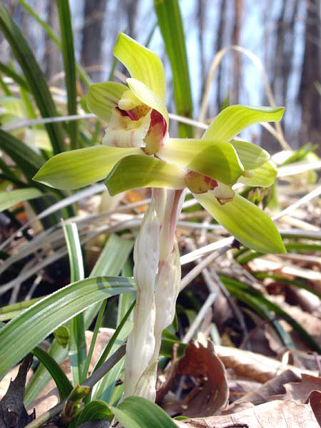 ランというと胡蝶蘭とかあの手の派手なヤツを連想される方も多いと思いますが、国産のランにはこのシュンランのような清楚なものもあるんです。地味すぎて物足りないかもしれませんが、長い冬を乗り切ってやっと出会えるとたまらなく美しく見えてしまいます。