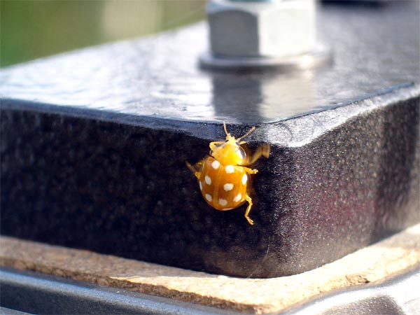 ムギマキ狙いで某所をさまよってるときに、偶然KYさんとお会いしまして、あれやこれやと話し込んでたら、こやつがおいらの三脚を登攀中でした。