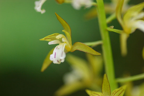 この花が登山道で咲き始めると、はるか稜線ではキバナノアツモリソウが咲き始めるのです。今年はキバナノアツモリソウの方は見に行きませんでしたが、それでもこの花は見に行きたくなってしまいます。ランの仲間としては個体数が多い方なので、いわば「普通の花」ではありますが、この楚々とした佇まいがなんともいえません。