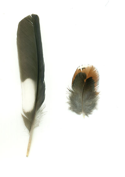形は、以前小布施のお山で拾った寅の風切と瓜二つの相似形なんです。違うのは長さと色の按配でして。