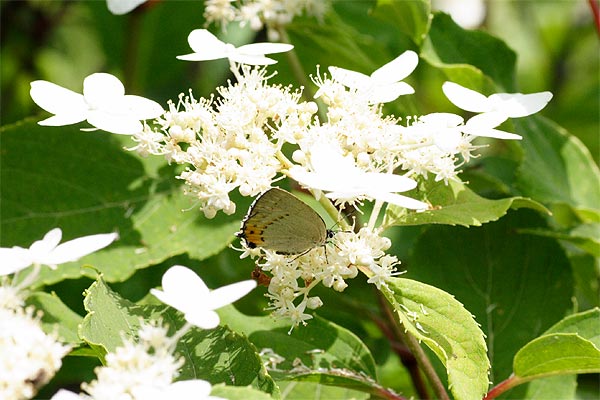 手元の図鑑によると大変珍しい種類らしいんですが、山頂に数本あるノリウツギの花には全部で10頭ぐらいいましたよ。