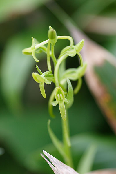 おいらが行った山では、この場所に3株ほど花をつけているものがありましたが、周囲はササや他の植物が大分あって、オノエラン好みの環境ではないようでした。ザレた岩場を好むそうですんで、そういう環境の多いところへ行かないとダメですね。