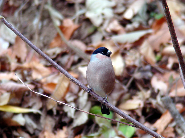 最初、この若鳥の方を♀かと思ってしまいまして、「ウソのつがいっていいなぁ」とか何とか言いながら見てたんですね。ところがよく見ると喉のところがかすかに赤くなってるぢゃぁあ~りませんか。さらによく見ると黒い「帽子」の形が♂とおんなじ。