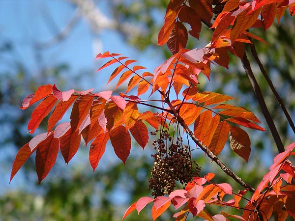 ウルシ系はかなり色づいてましたよ。他の木々のちょいと疲れた緑といいコントラストでした。